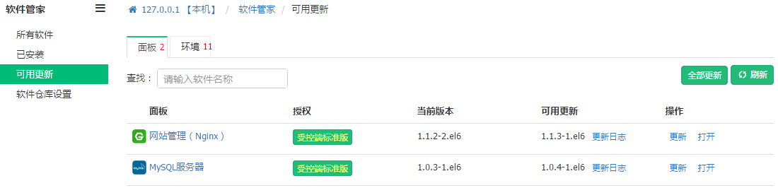 所有可更新的面板: