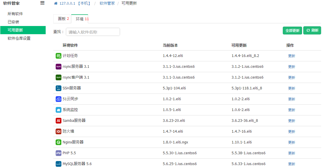 进入“软件管家”-“可用更新”,可对软件进行批量更新。