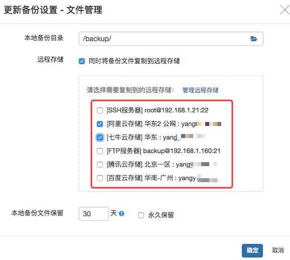 3. 设置远程备份文件保留时间,默认为:30天