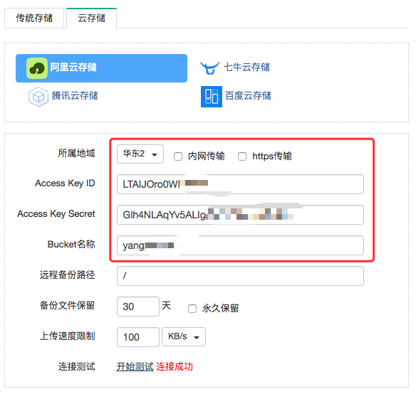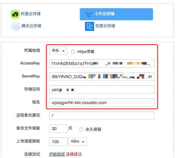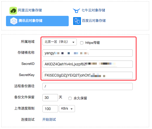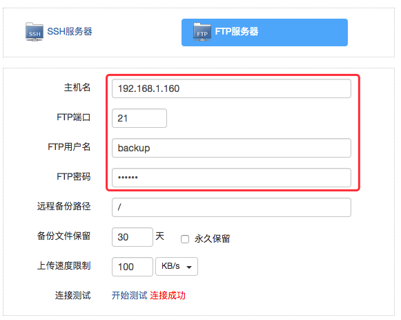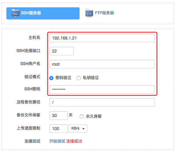 填入信息后,您可以点击“开始测试”检测连接是否成功