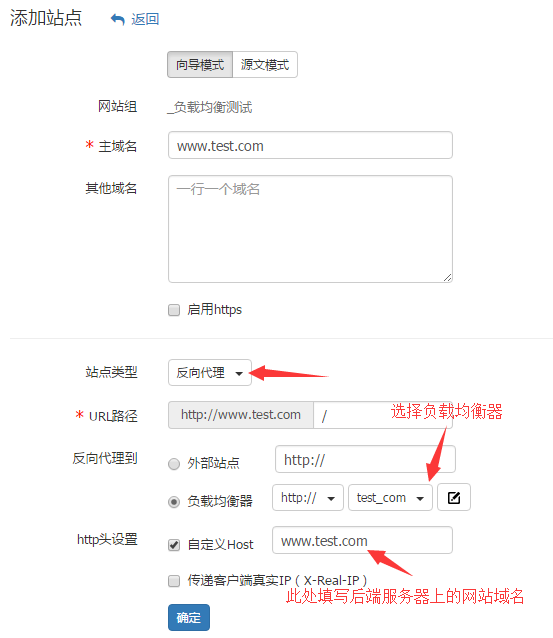在这一步中,我们要在负载均衡节点上创建一个反向代理站点,将请求代理到负载均衡器上。