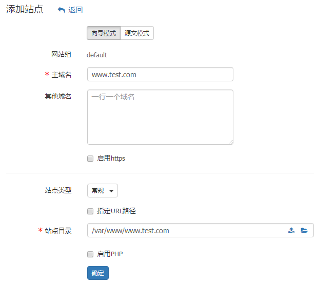 这里的域名只是作为一个标识,可以随意填写,为了方便识别,我们直接使用 www.test.com。