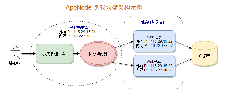 所有访问请求都指向到负载均衡节点,负载均衡节点中的负载均衡器会将请求分发到后端的服务器集群中。