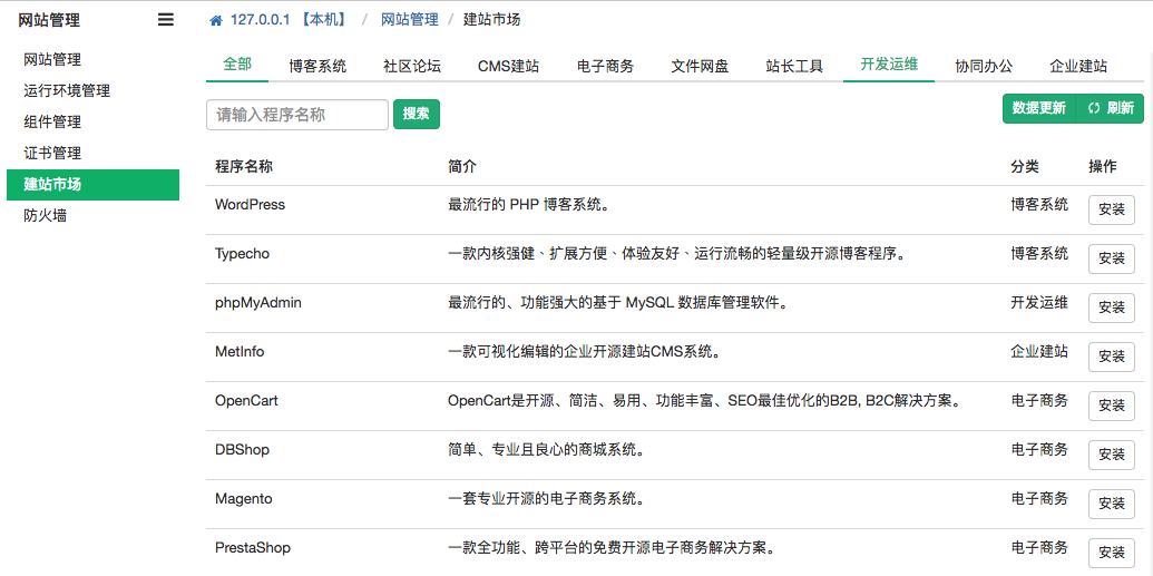 AppNode 通过建站市场,提供了一些常用的网站,您可直接安装: